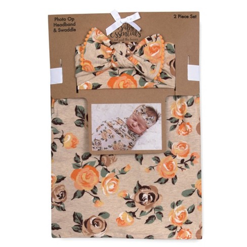 Baby Essentials Floral Harvest Swaddle Blanket And Headband Cream Floral Target